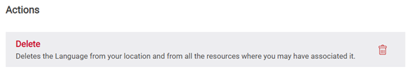 If the languages you wish to delete are associated with any devices’ layout, you will not be able to delete it. To dissociate a language, go to Devices > Layouts > Associate Languages box. Unselect the language that you wish to delete, go back to the management area and try again.